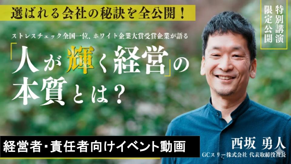 GCストーリー株式会社 代表取締役社長・西坂勇人が、自身の原体験や経営の現場で培ったノウハウをもとに、時代に合った組織づくりの条件を語ります。