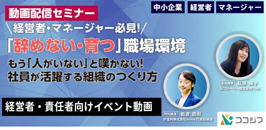 中小企業の経営者・マネージャーの皆様が直面する「人」の課題に対し、『職場の人間関係』という根深い課題に正面から向き合い、人がやめない組織をつくりませんか?